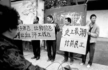每年歲末,農民工討薪漸成社會熱點。1月21日,40多位農民工在武漢街頭跳起騎馬舞,上演“討薪style”,又一次引起媒體和社會關注。拜河神求發薪,農民工版新聞發布會討薪,“元芳”討薪等各種創意討薪層出不窮,是什么把討薪逼成搞“行為藝術”發人深省。