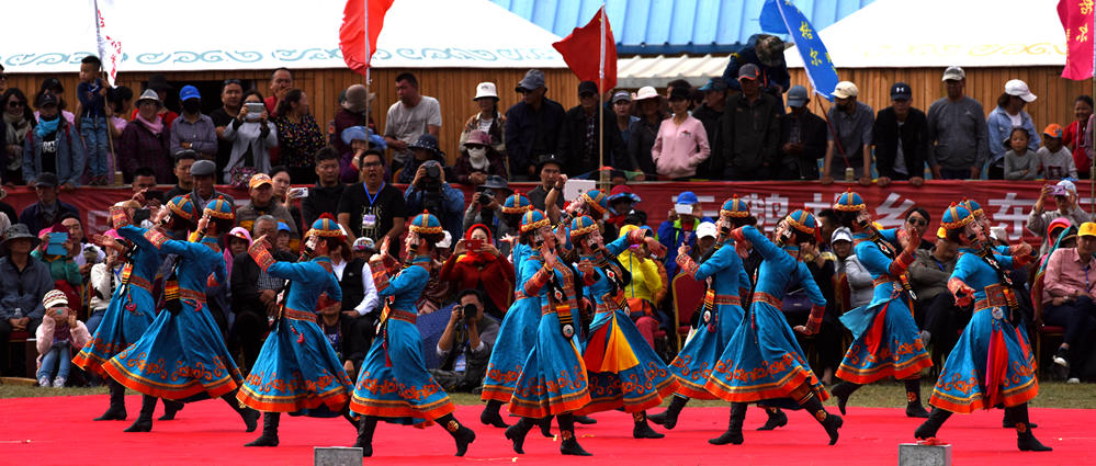 • “江格爾那達慕—文化旅游非遺體驗活動”上演搏克(摔跤)比賽項目。