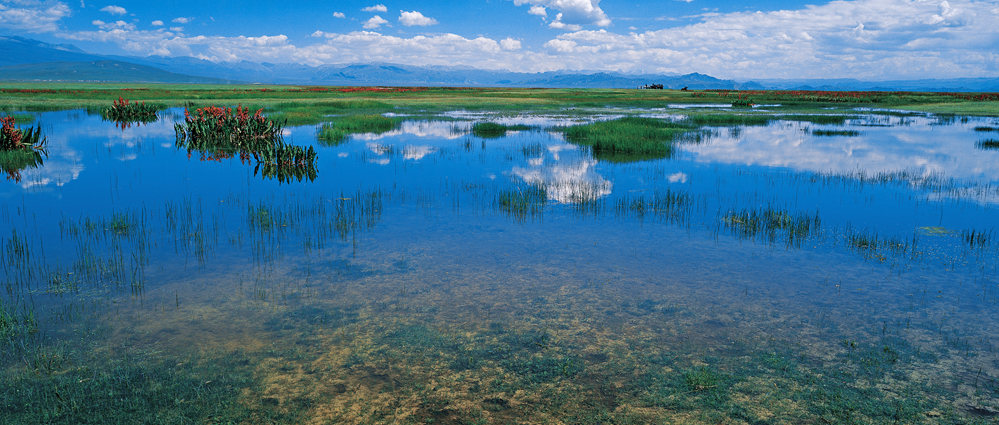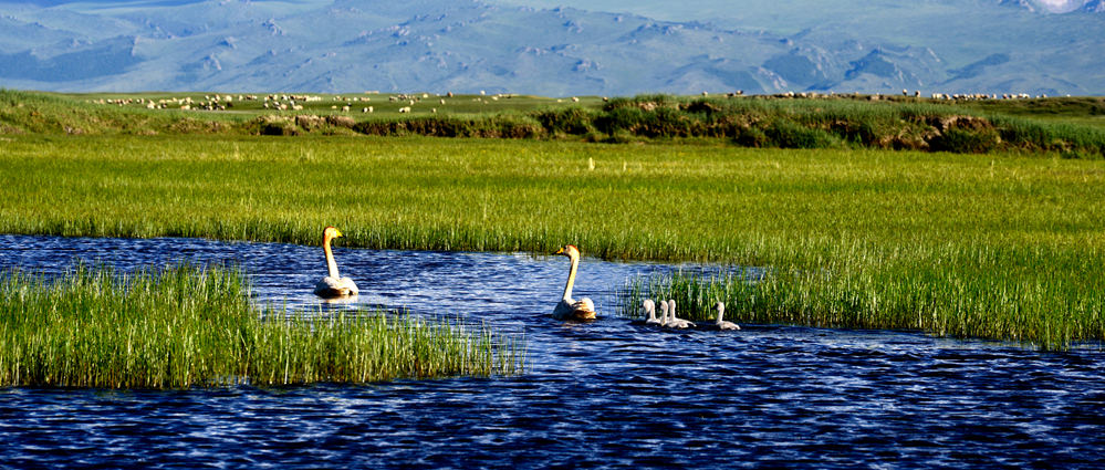 • 【九曲十八灣景區】座落在大尤勒都斯盆地,巴音布魯克鎮南部,穿越天鵝湖。距國道217線45公里;距縣城320公里;距庫爾勒市400公里;距烏魯木齊市430公里。古老的開都河蜿蜒流淌,猶如玉帶流經巴音布魯克草原。夕陽西下時,天鵝及各種水禽在夕陽中嬉水,開都河面上會映出九個太陽,河水被映得通紅,堪稱為絕景。
