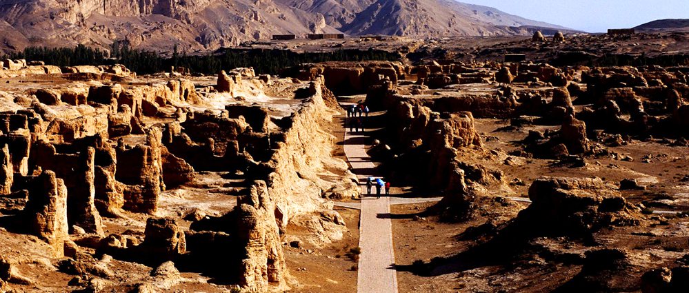 【交河故城】交河故城位于吐魯番市以西約13公里的亞爾鄉。西漢時,是“車師前國”的都城。唐代為西州所轄之交河縣。唐王朝派駐西域的最高軍政機構“安西都護府”一度曾設在這里。后遷至龜茲(今庫車縣)。六世紀的曲氏王朝在此設立了交河郡。交河故城曾出土不少文物,如唐代蓮花瓦當、蓮花經卷等。 【高昌古城】高昌古城位于吐魯番市以東偏南約46公里火焰山鄉所在地附近。高昌城歷經高昌郡、高昌王國、西州、回鶻高昌、火洲等長達1300余年的變遷,于公元14世紀毀棄于戰火。1961年,這里被列為中國重點文物保護單位。