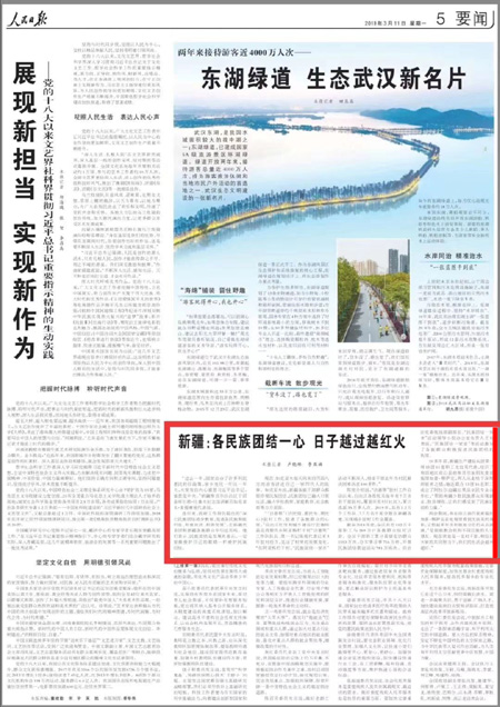 連日來,政府工作報告提出的“深化民族團結進步教育,促進各民族和睦相處、和衷共濟、和諧發展”,在新疆代表團和新疆各族群眾中引起共鳴。他們表示,民族團結是發展的基石,一定要像愛護自己的眼睛一樣愛護民族團結【詳細】