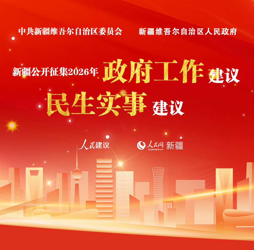為科學謀劃來年政府工作以及選準選好民生實事,更好地服務群眾、提升人民生活品質,即日起,新疆維吾爾自治區黨委、自治區人民政府聯合人民網“人民建議”,面向社會公開征集對2026年政府工作和民生實事的建議,歡迎您提出寶貴意見!