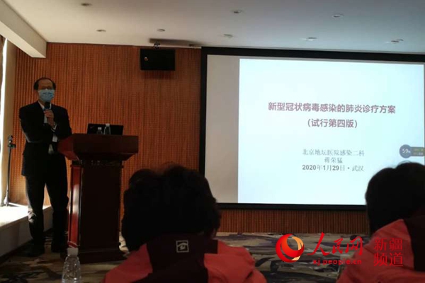 人民網烏魯木齊1月30日電(陳新輝)“做好自身防護才能消滅敵人,今天培訓的知識和要點我們都要熟記于心,熟練運用到抗擊新型冠狀病毒感染的肺炎的戰役中,早日幫湖北的親人打贏這場疫情防控戰! 1月29日,北京地壇醫院蔣榮猛教授和中南大學湘雅醫院吳安華教授為新疆援鄂醫務人員進行了理論培訓。聽完課程后,新疆醫科大學第二附屬醫院重癥醫學科主任文進就拉著隊員們開始實操培訓,早點培訓合格,早點進入真正的抗疫戰場。