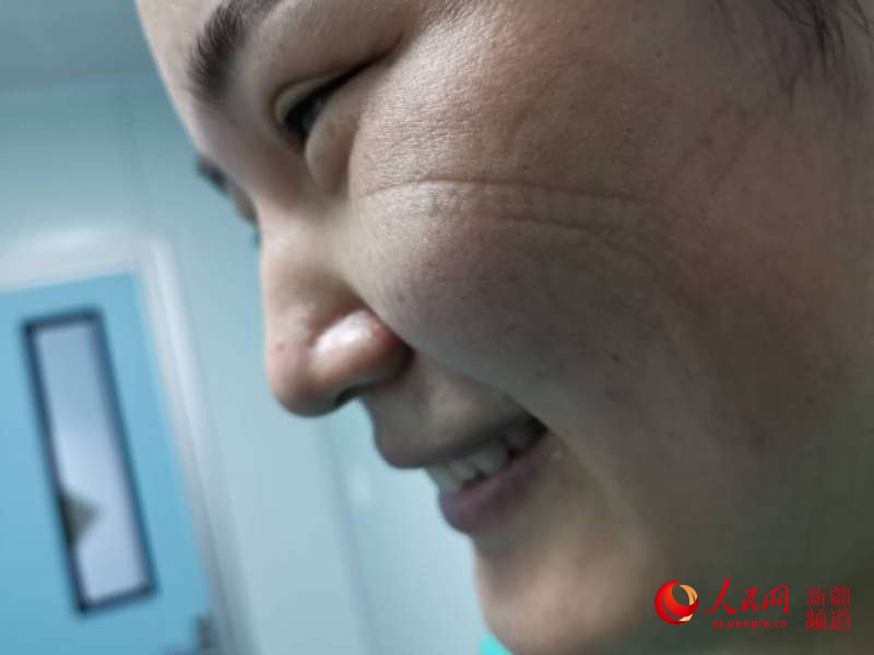摘了口罩后臉上布滿了勒痕。