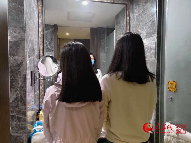 “剪吧,這樣方便些!被氐椒块g后,護士張曉靜和吳晶決定剪去心愛的長發。張曉靜的頭發留了十年,吳晶留長發準備今年結婚,兩個九零后女孩讓同事幫忙剪短了頭發。