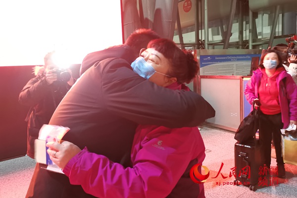 新疆第二批援鄂醫療隊領隊陳暉與丈夫告別。