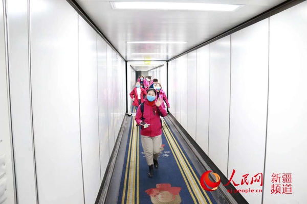 新疆第二批援鄂醫療隊快速通過綠色通道準備登機。