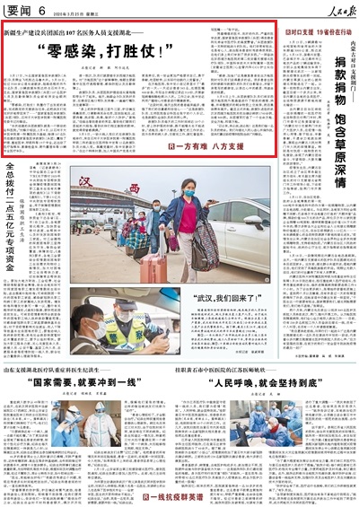 新疆生產建設兵團派出107名醫務人員支援湖北——
