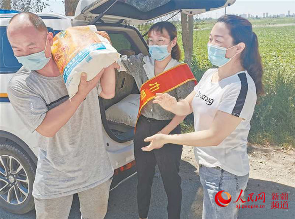 7月17日,在米東區長山子鎮上梁頭村,米東區農業農村局駐村工作隊的愛心服務車,為居民送去糧油等生活必需品。宋建華 攝