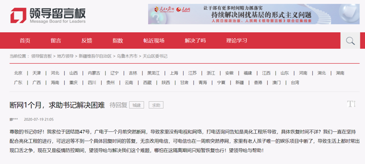 疫情期間,您是否也遇到網絡通信等問題?歡迎到人民網《領導留言板》留言。
