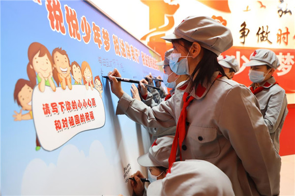 小學生在“稅悅少年夢 稅法伴我行”留言板上寫下心愿和對祖國的美好祝福。