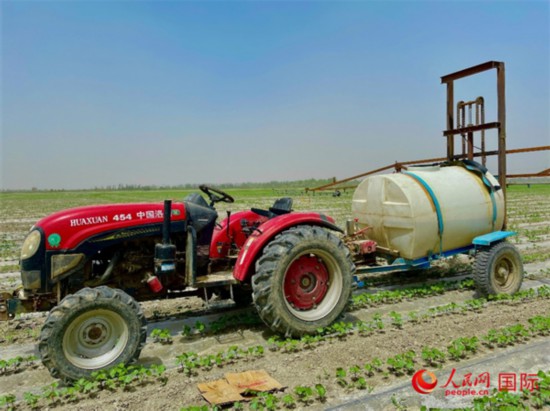 撒藥拖拉機。人民網 張榮 攝
