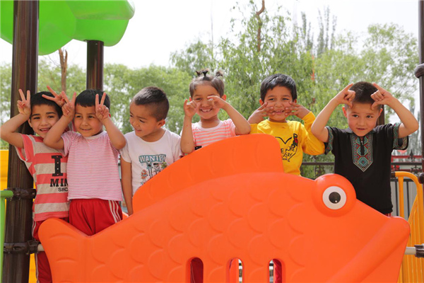 村里的孩子在中國石化西北油田援建的幼兒園上學。李學仁攝