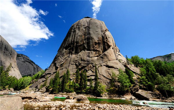 不少游客來到可可托海,有人會尋找歌中的牧羊人,也有人去尋找名字中的那片海?煽赏泻R鉃椤熬G色的叢林”,看海的游客自然是尋不到海的,但在額爾齊斯大峽谷中,雄山奇石無數,姿態各異。