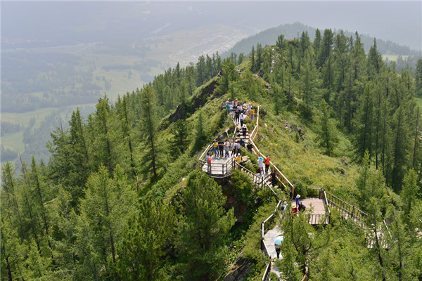 圖為游客在喀納斯景區游玩。胡俊秀攝