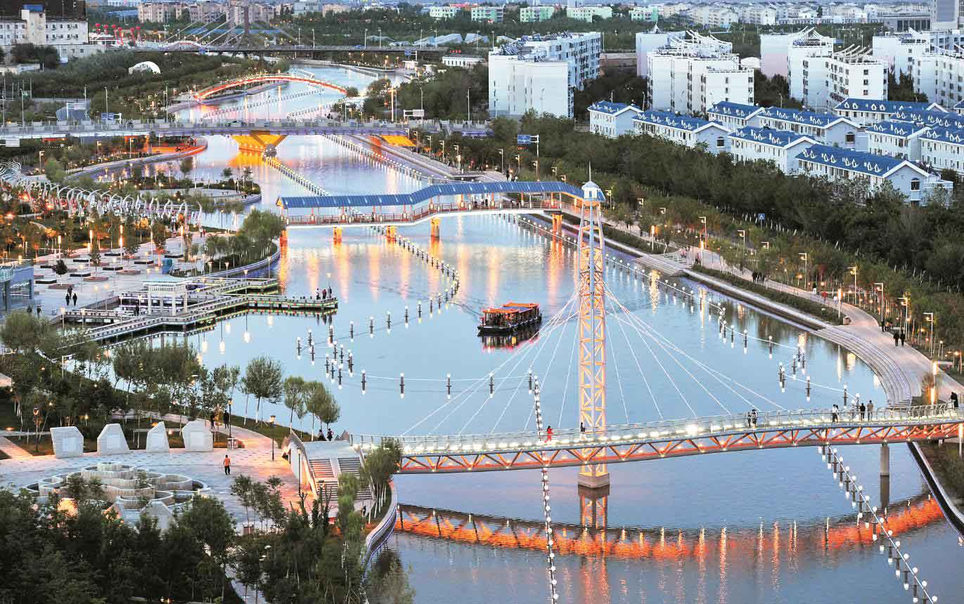 6月1日晚,克拉瑪依河濱河公園段,大型畫舫(游艇)載著游客暢游。夜幕降臨,克拉瑪依河及周邊燈火璀璨,清澈的河水和遠方的樓宇,構成了一幅美麗的“江南水鄉”畫卷,吸引市民和游客乘船一游。