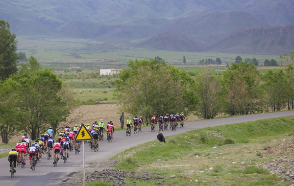 2017年5月,環賽里木湖公路自行車賽,選手正在騎行。于蘇甫·艾尼攝