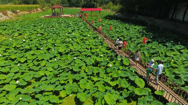 游客在博樂市的小荷度假村賞荷花。于蘇甫·艾尼
