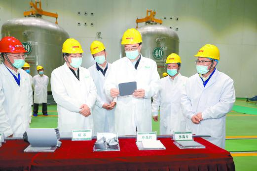 8月23日,新疆維吾爾自治區黨委書記陳全國在烏魯木齊市調研。這是陳全國來到位于烏魯木齊甘泉堡經濟技術開發區(工業區)的新特能源股份有限公司,了解企業生產經營、技術研發、帶動就業等情況。崔志堅攝
