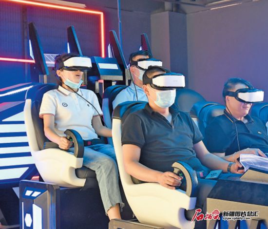 9月1日,游客在新疆游客集散中心3樓體驗VR動感快車。韓亮攝