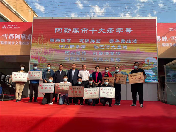 “阿勒泰市雪都老字號美食店”頒獎現場。吳海燕攝