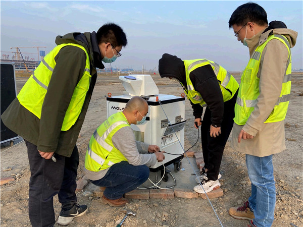 前期,在局氣象部的組織協調下,氣象中心設備維修室順利完成了安裝地點選址、線路的提前敷設、安裝平臺灌漿打樁等工作,經過充分的準備,激光雷達按照預期進度安裝到位。為了保證施工質量,設備室組織人員力量,克服人手緊張和天氣逐漸轉涼的困難,與廠家工程師協同配合,全程堅守安裝現場,共同安裝調試該設備。