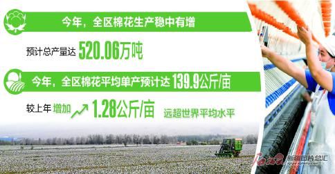 今年,全疆棉花生產穩中有增,預計產量比上年同期增長3.1%,全疆棉花顏色級、纖維長度、斷裂比強度等品質指標也同比實現較大幅度提升,棉花質量明顯好于上年,生產效益持續提升。