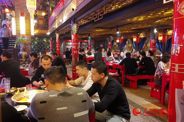 消費者在新天潤美食街享受美食。人民網 陳新輝攝