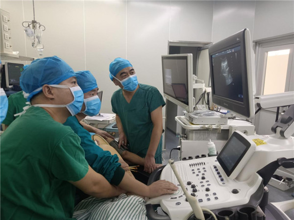 神經阻滯技術可實現術側手術部位痛覺消失,減輕患者術后疼痛,加快患者恢復并改善轉歸,大大提高患者術后滿意度。于是,胡濤結合醫院手術種類開始手把手帶領大家進行超聲引導下腹橫筋膜阻滯和胸椎旁阻滯等技術,在他的大力推動與悉心輔導下,全科醫生都積極投身于學習的隊列中,并很快掌握了其中的技巧。從此,麻醉恢復室和外科病房里疼痛的病人明顯減少,越來越多的患者達到了圍手術期的無痛效果。此項新技術填補了巴州麻醉領域的空白,也是南疆率先開展此類技術的地方。