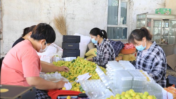 工作人員正在分揀、包裝小白杏。庫車市委宣傳部供圖