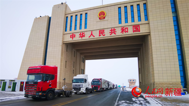 1月10日,阿拉山口口岸車輛有序通過。人民網記者 韓婷攝