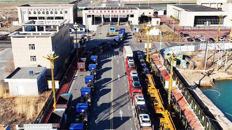 一條條貨柜整齊排列,一輛輛卡車來往穿梭。4月11日,巴克圖口岸一派繁忙,各類成品車在口岸查驗通道等待出口,平均半小時就能辦理完通關手續,踏出國門,完成出口。