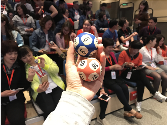 時間來到21:15,主持人宣布搖獎開始,搖獎機啟動,所有人聚精會神觀察每一個步驟,看著一個個“小球”滾動。