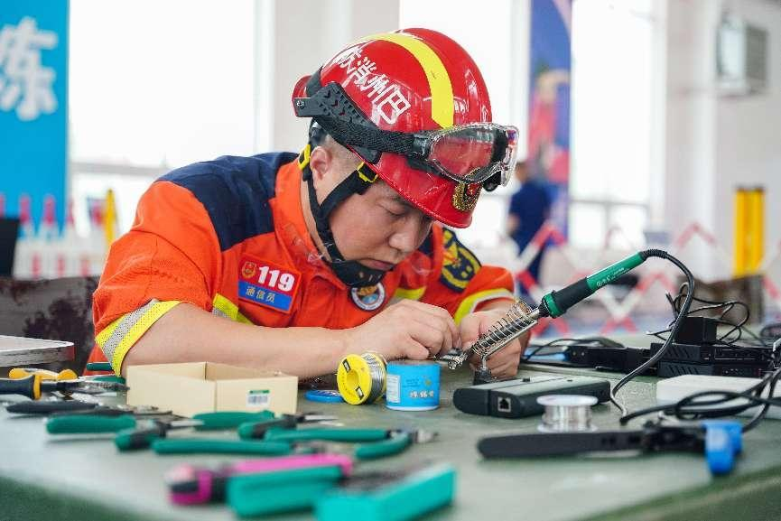 圖為消防通信員正在參加通訊保障模塊科目競賽。丁昊攝
