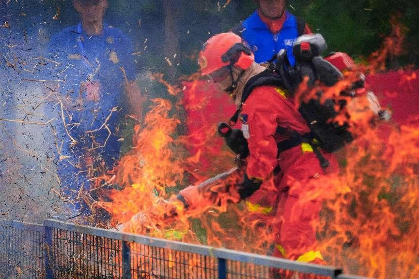 圖為森林消防員正在參加競賽活動。袁祥建攝