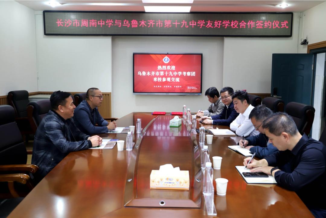 就在烏魯木齊市第七十六小學學習團收獲滿滿的同時,10月26日,烏魯木齊市第十九中學與長沙市周南中學簽訂了友好學校合作共建協議。兩校將在師生互訪、云課堂、交流研討、集團化辦學經驗探討學習、教學資源共享等方面進一步加強合作,建立長效交流機制,確保共建工作落地落實。
