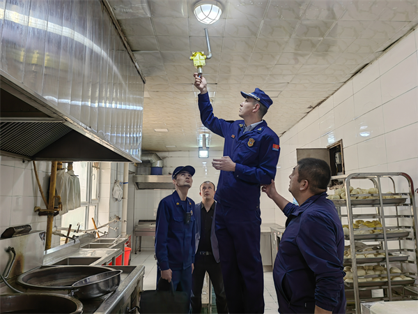 圖為阿克蘇地區消防救援支隊消防監督員測試可燃氣體報警器聯動功能是否完好有效。胡瀟瀟攝