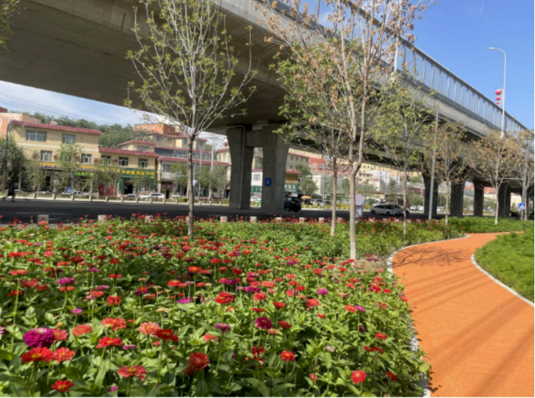 除此之外,針對道路行道樹“有綠無蔭、有景少蔭”、綠化品種單一等問題進行整改,形成配置合理、錯落有致、層次清晰的道路綠化景觀。補植喬灌木共計21.88萬株、草坪503㎡、花卉11500盆、金葉榆球26株,裸露地復綠10113㎡。
