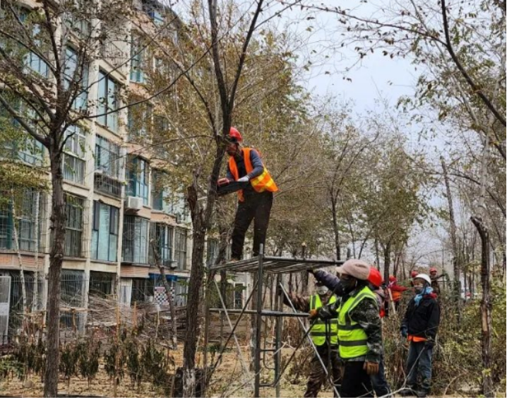 2023年10月底,新民路街道新民西街社區聯合轄區區園林管理局,對縣政府小區樓前的12棵遮擋光線樹木進行修剪,為居民營造一個安全舒心的居住環境。