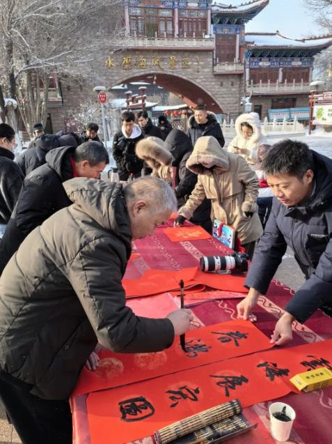 1月21日下午,烏魯木齊市水磨溝區委宣傳部聯合文聯在水磨溝公園開展了“我來寫春聯 龍年送祝?!被顒?,文聯精心選派書法協會優秀成員,深入群眾身邊,為群眾現場寫福字、送春聯,贈送給前來游園的各族群眾。