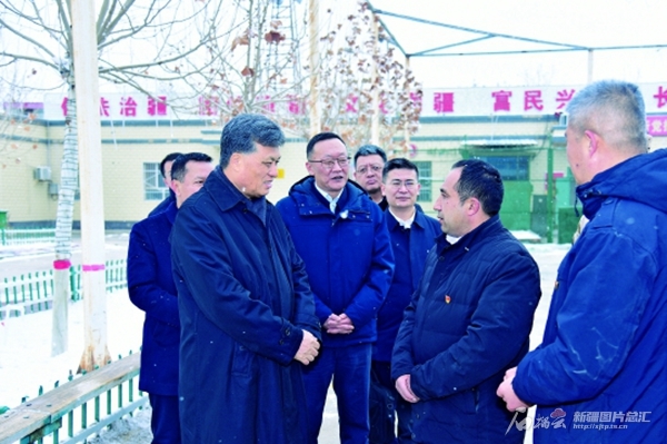2月6日,自治區黨委書記馬興瑞來到和田地區,深入和田市、和田縣基層村鎮調研。這是馬興瑞在和田市拉斯奎鎮庫勒萊克村親切看望慰問村“兩委”班子、第一書記和駐村工作隊成員等。張勇攝
