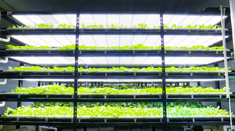 新疆紫晶川梭高新農業股份有限公司生產部部長劉振濤說:“500平方米的種植車間,每天可以產出200公斤的葉菜,一年可以產出60噸的葉菜。一畝地的產能,相當于傳統大田60畝地的產能 ?!?/p>