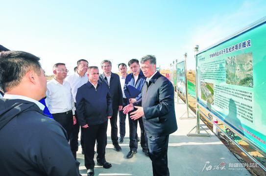 烏魯木齊市米東區北部沙漠光伏基地正加快建設。18日下午,馬興瑞、艾爾肯·吐尼亞孜來到這里,沿途察看項目建設情況,并先后到中綠電350萬千瓦光伏項目、華電50萬千瓦光伏項目建設現場,聽取項目規劃、建設情況介紹,和有關方面負責同志共同研究推進工作。他強調,要加大力度推進項目建設,強化新能源接入電網等各方面保障,確保項目高質高效建成投運。要著眼發展大局、立足現實需要推動新能源產業發展,更好發揮在保障能源安全和區域投資增長、工業經濟發展中的重要作用。要充分發揮中央企業和區屬國有企業的主力軍作用,增強地方黨委政府的主觀能動性,加快推動新能源項目建設和產業發展提質增效。