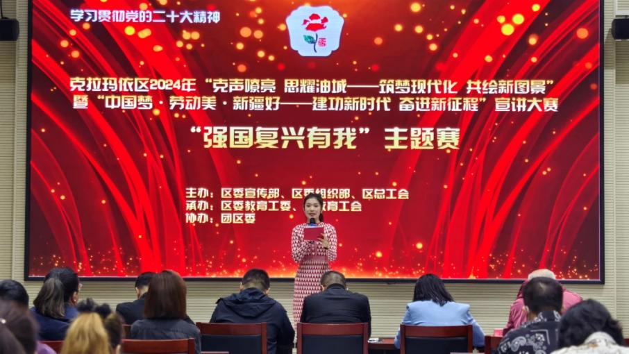今年3月,由克拉瑪依區委宣傳部、區委組織部、區總工會、區社科聯共同主辦的克拉瑪依區2024年“克聲嘹亮思耀油城——筑夢現代化共繪新圖景”暨“中國夢·勞動美·新疆好——建功新時代奮進新征程”系列主題宣講大賽正式啟動。