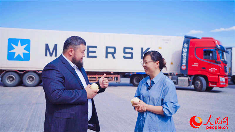 伊利亞斯稱贊中國果蔬在中亞很受歡迎。人民網 李欣洋攝