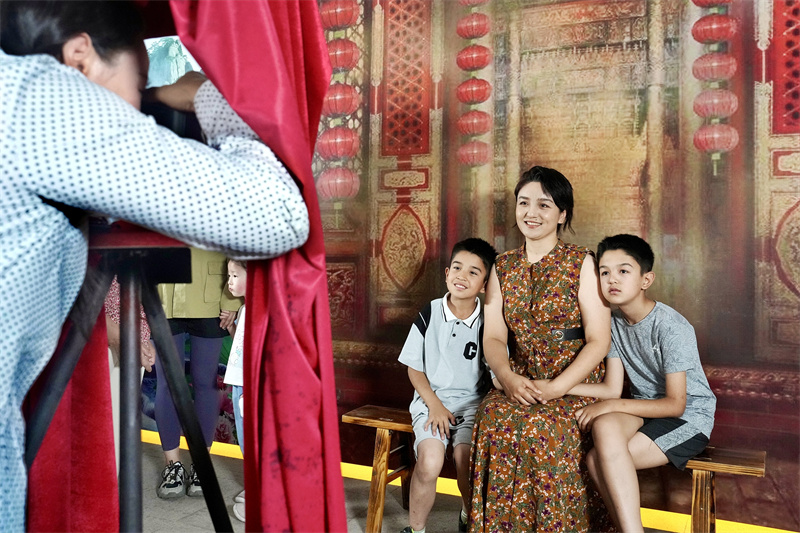 市民帶著孩子重回“群英照相館”。崔文娟 攝