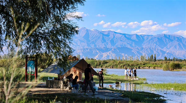 在二師二十一團天鵝灣,“露營經濟”持續火熱,“一帳難求”。大大小小的各式帳篷在這里“安營扎寨”,游客們在這里嬉戲燒烤、觀景露營……盡情享受愜意時光。