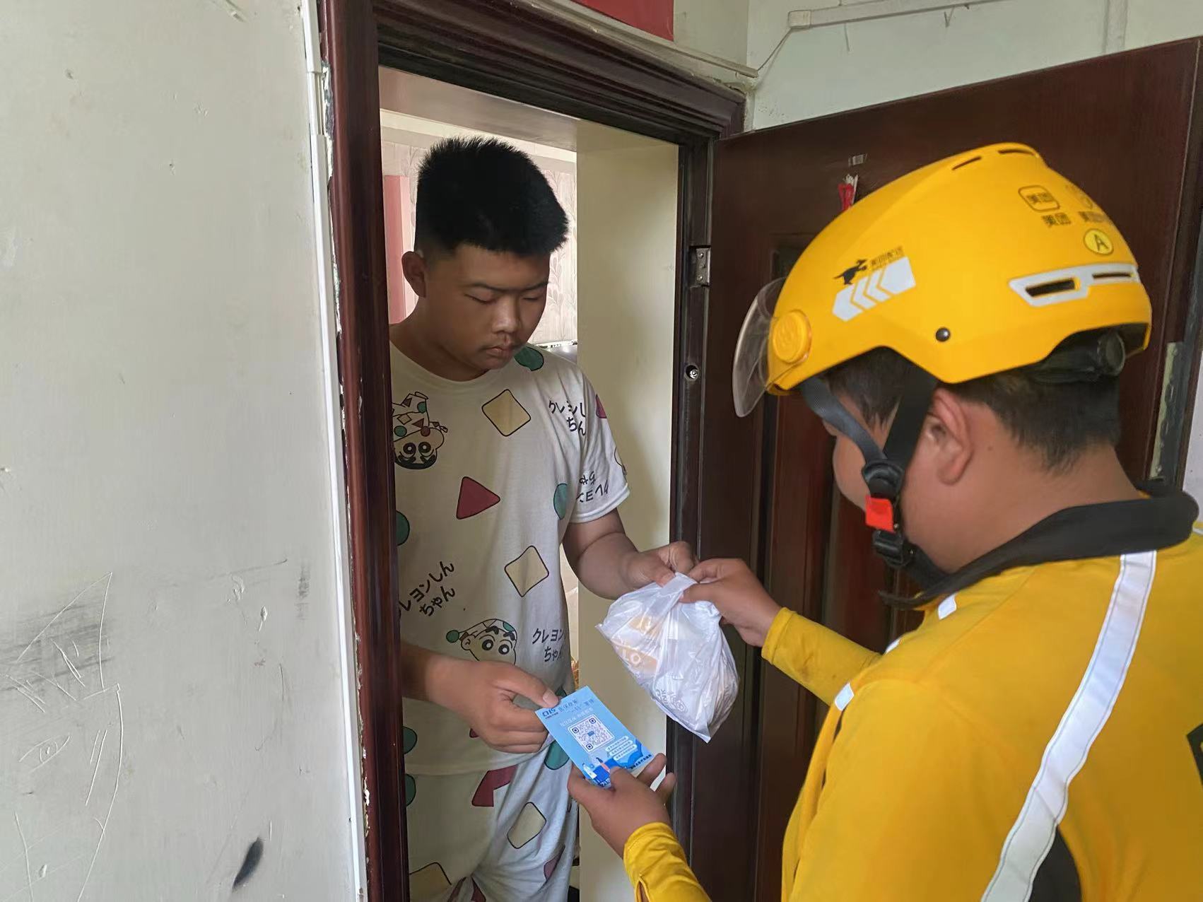 “您好,這是您的美團外賣,這是隨餐配送的醫保政策宣傳卡,祝您用餐愉快!”