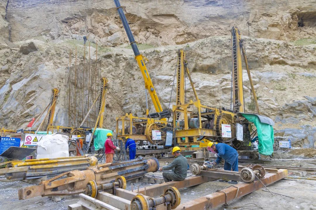 引水隧洞是三十八團二期水利工程的控制性工程,由于隧洞位于昆侖山和阿爾金山交界處,洞內地質條件復雜,三類圍巖多,施工難度較大,項目部將傳統的爆破施工改為懸臂式掘進機施工工藝,有效降低了安全風險。為了防止滲水,十一標段還在洞口旁開展了槽孔地下連續墻建設工作,目前工人們正在利用四臺沖擊鉆機進行成孔作業。
