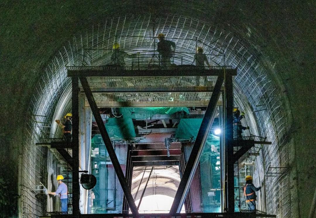 除了調節沉沙池外,三十八團二期水利工程引水渠首及隧洞工程、引水干渠、渡槽的建設工作也在如火如荼地開展中。在土建十一標段的施工支洞現場,工人們正忙著進行鋼架結構的安裝,挖掘機也運轉不停,全力確保支洞的建設工作安全有序進行。